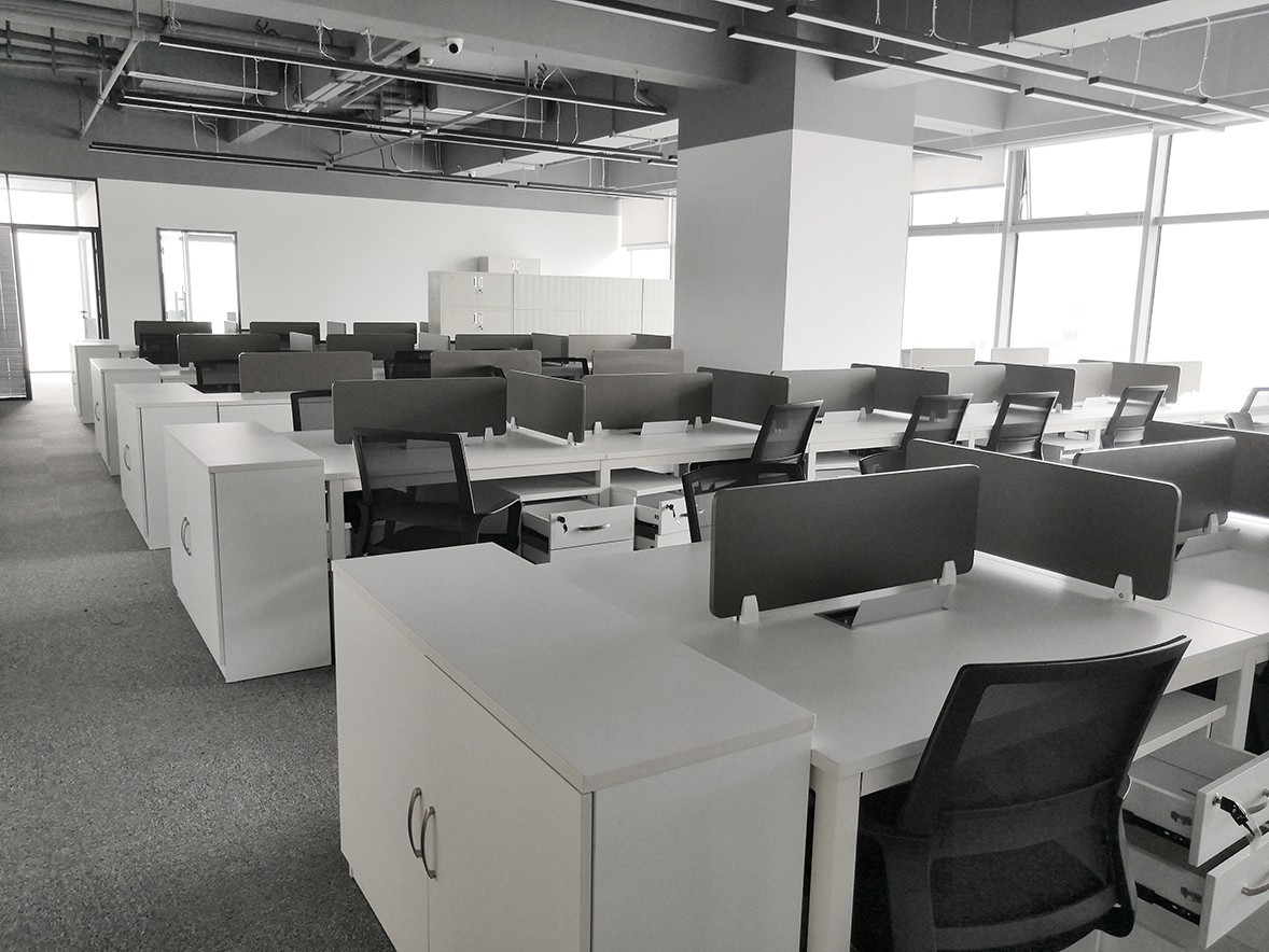 This case is positioned as a modern and simple style. The overall hard decoration uses black, white and gray as the main color, and warm wood color as the main axis, which makes the overall space more warm and comfortable, subverting people's stereotype of the cold and jerky workplace, simple and neat. The design makes the space more spacious and transparent, shaping the charm of modern style. The glass partition is made of warm wood combined with simple and bright white transparent glass, which not only increases the indoor permeability, but also increases the color temperature of the space. The irregular spacing is deliberately separated to show the beauty of patchwork and make the space have a rich and diverse texture. Appearance is not dull and tasteless because of the same material. The open working space stimulates the interaction and creativity of employees, and increases employees' sense of corporate pride and belonging.