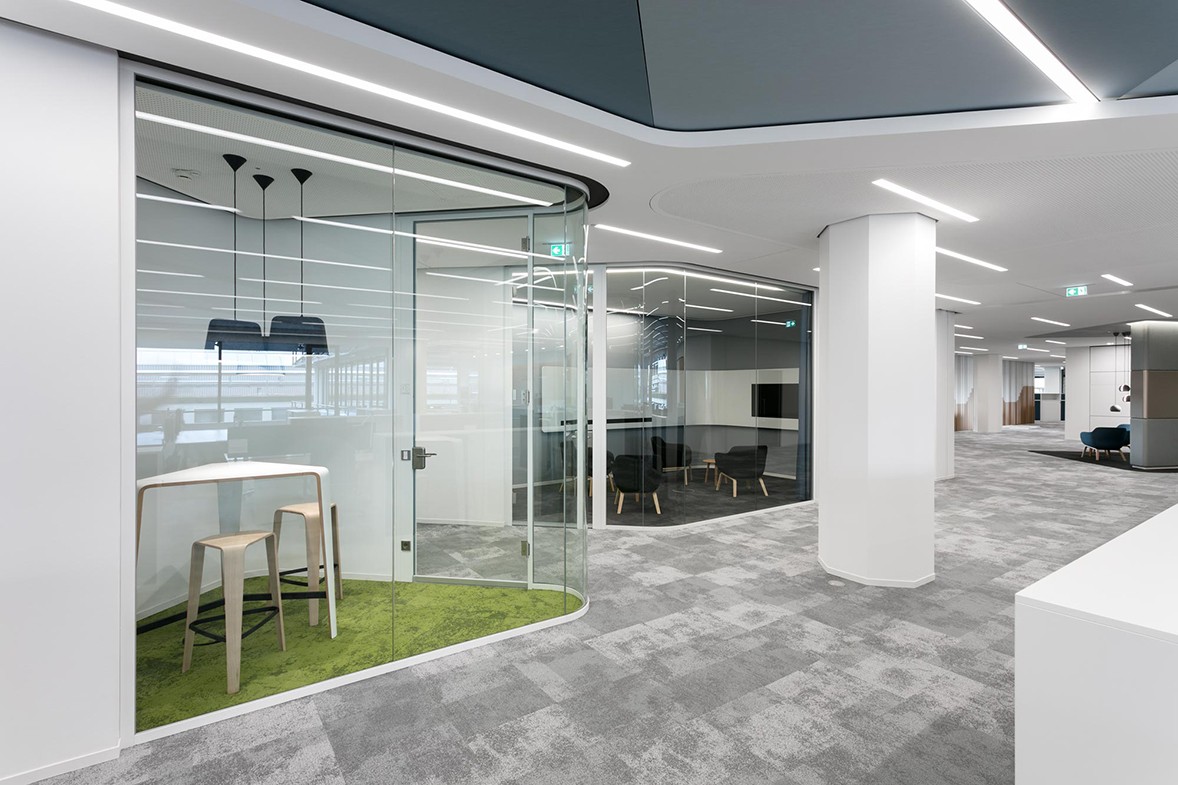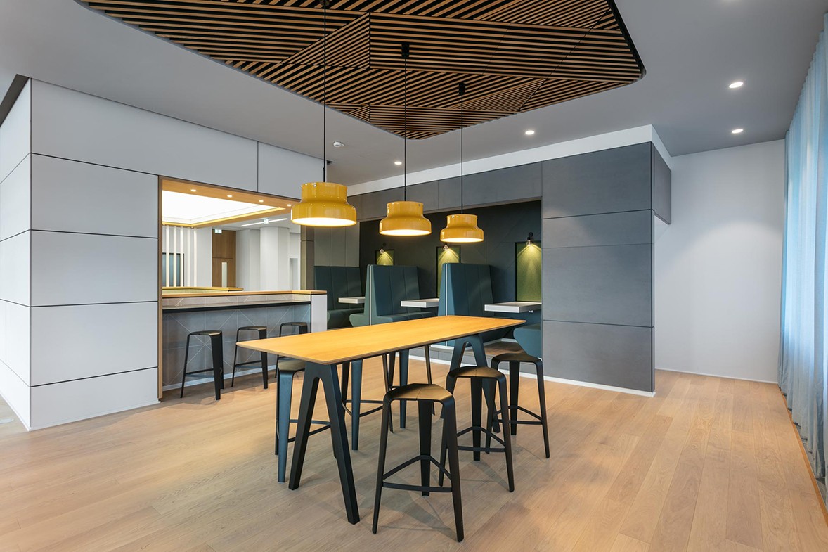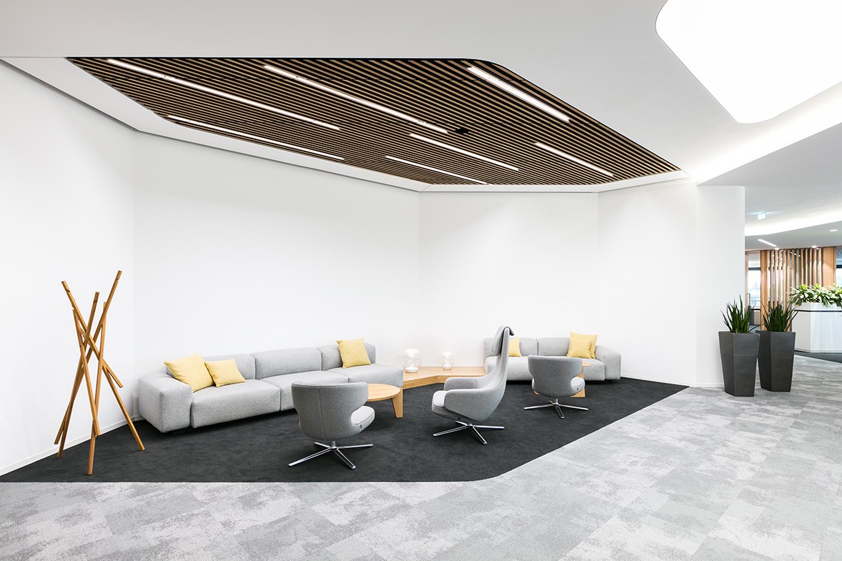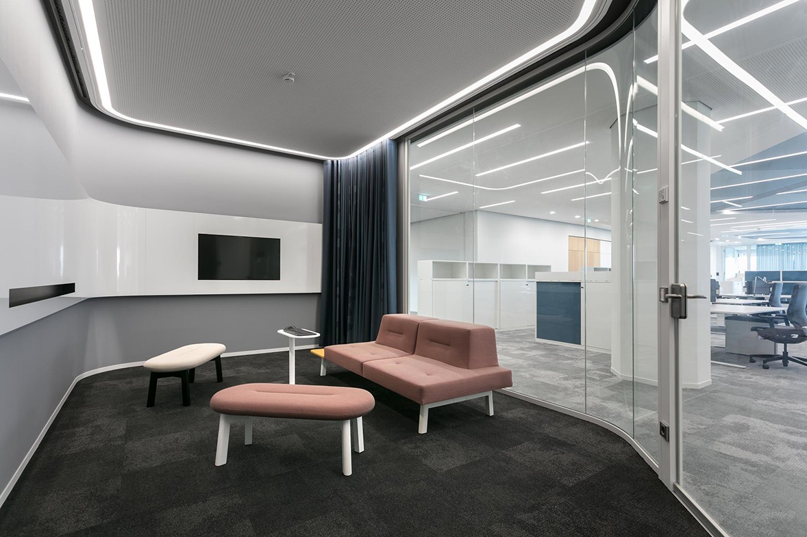 設(shè)計(jì)采用標(biāo)準(zhǔn)材料體系,在合理的預(yù)算內(nèi)設(shè)計(jì)出精致的空間。在淺棕色的線性照明凹槽和嵌入式的板條裝飾。定制桌椅和入口處圍合私人辦公室與會議室的墻體展現(xiàn)出更多木質(zhì)細(xì)節(jié)。此外,工作和會議空間還都配備像咖啡館一樣的寬敞休息室,可以容納所有員工。工作空間裝點(diǎn)著織物和陶瓷材質(zhì),就像住宅一樣溫馨舒適。以一個簡單的幾何形狀來構(gòu)建空間秩序,用最簡單的方法去解決復(fù)雜的問題。游走于灰白黑之間,一抹亮色便成為點(diǎn)睛之筆,活躍跳脫,是為創(chuàng)意支點(diǎn),靈感源頭。亦作為整個空間設(shè)計(jì)靈魂之所在。