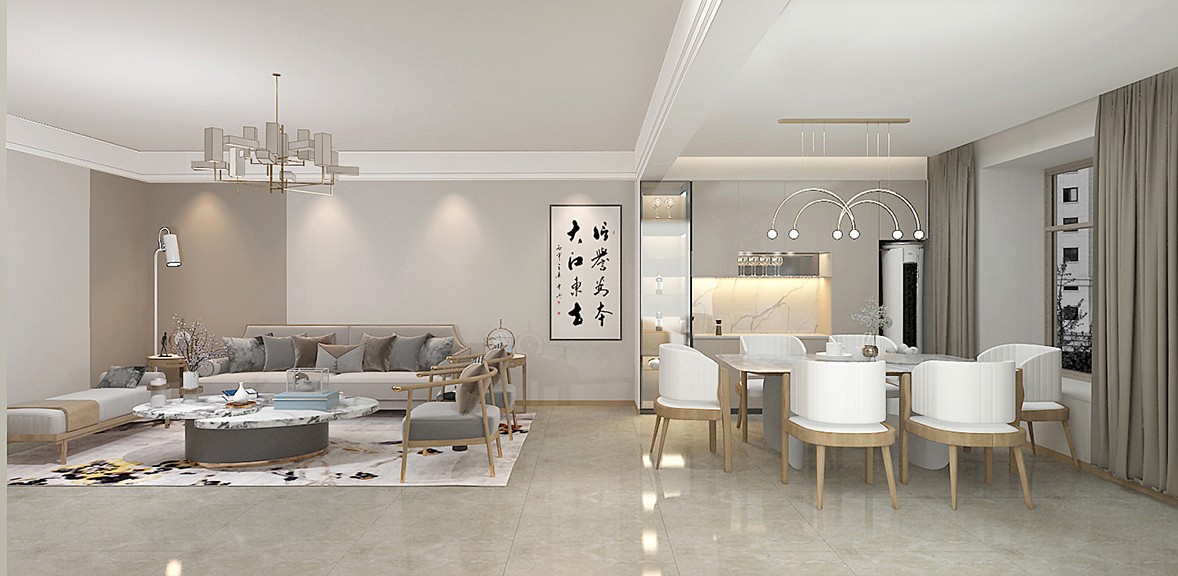 Based on the living habits of the occupants, each area is extended in a reasonable space. The entrance hall is the designer's laying of the home life. The curved ornaments set the soft tone. The smart atmosphere changes the atmosphere of the home. When strolling and staying in the room, the light flickers and extinguishes at the fingertips, and one key is the beginning of life. The natural breath brought by the greenery retains the thoughts and moves freely in the space, as if sinking into a long river of time, calm, free and very poetic. Large-area windows let the sun shine in every corner, and alluding to the warm and comfortable sense of life into the hearts of the occupants.