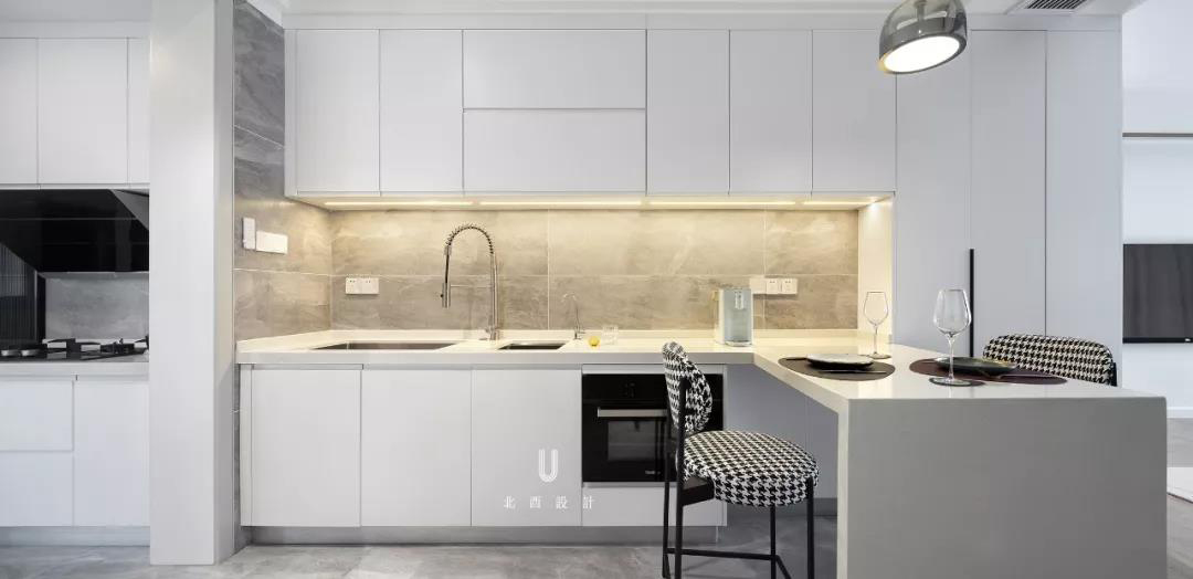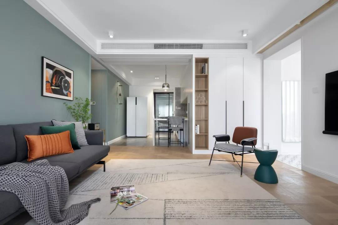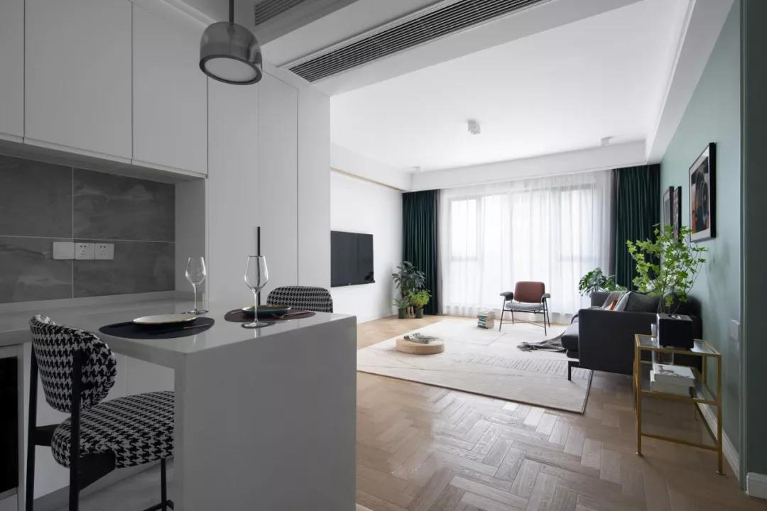 When you want to live a refined life, it will become countless small fragments, lighting up lights, cooking wine, cooking tea, and viewing flowers. In fact, life is made up of the trivial things every day. This case abandons the superfluous and complicated, makes every detail reasonable and just right, and collides the modern art style and metal elements to produce the unique sophistication and elegance of life. Step into the living room and feel the fusion of modernity and classicism. The geometric mosaic carpet is placed under the black gold coffee table, which is stable and neat and has an extraordinary style. The lines are many but not mixed, and the full texture of the space is reflected. Exquisite decorations will undoubtedly highlight the luxury of the space, using metal elements to show the elegance and atmosphere, and a little green plant will add a soft life atmosphere to the space.