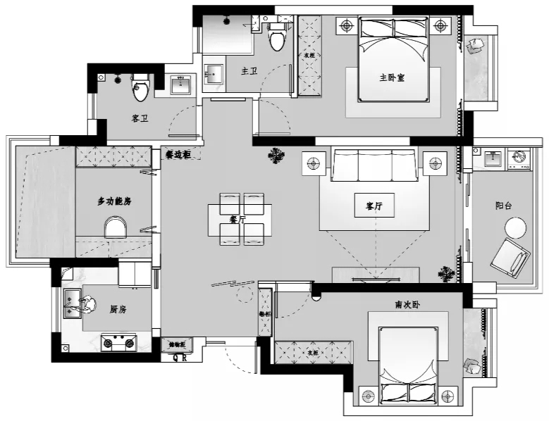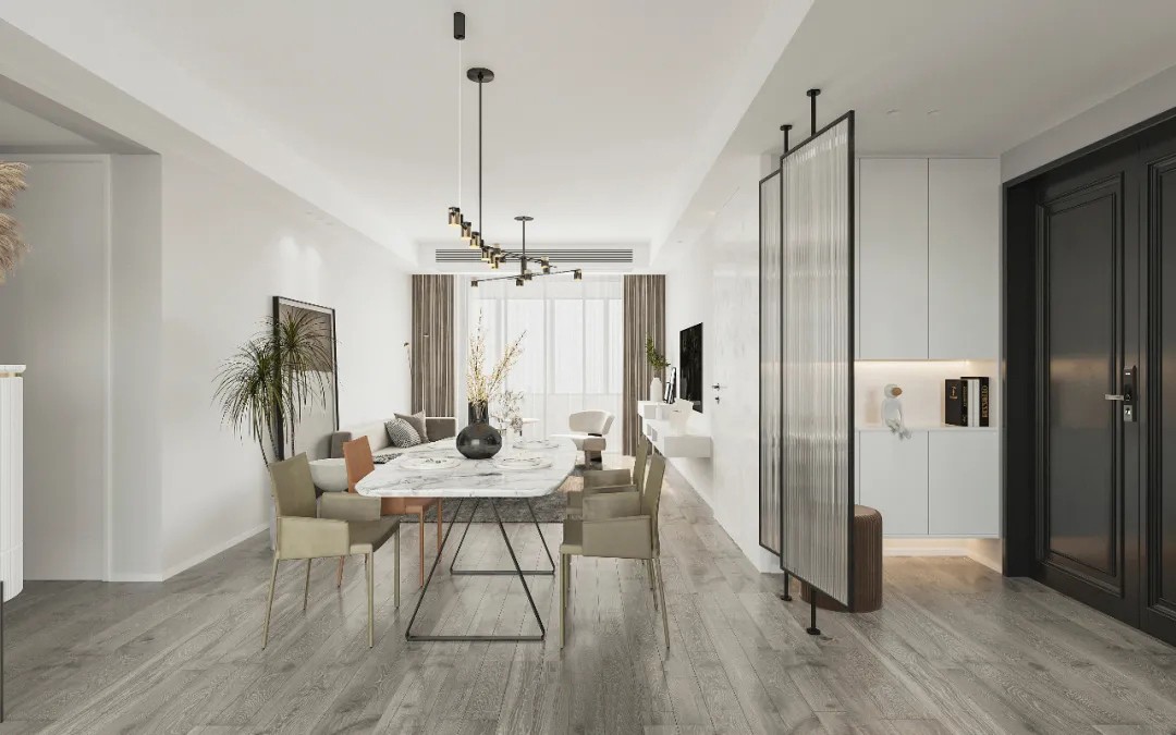 “解”的方式打破了原有昏暗的中軸空間,讓陽(yáng)光照射到每個(gè)角落。“構(gòu)”的方式在材質(zhì)上選擇鑒于“解”與“構(gòu)”兩者之間,選用了玻璃材質(zhì)。材料上利用玻璃、鋼板、木材、亞克力材質(zhì)的不同厚度體量和不同材質(zhì)的質(zhì)地對(duì)比反差,給空間層次一種“干凈”、“細(xì)膩”的節(jié)奏感。嘗試著在保留原有空間結(jié)構(gòu)方向的同時(shí),找出新的軸線關(guān)系,運(yùn)用軸線平移的方式使空間功能得到滿足。打破原有中軸空間,運(yùn)用軸線平移方式滿足空間功能